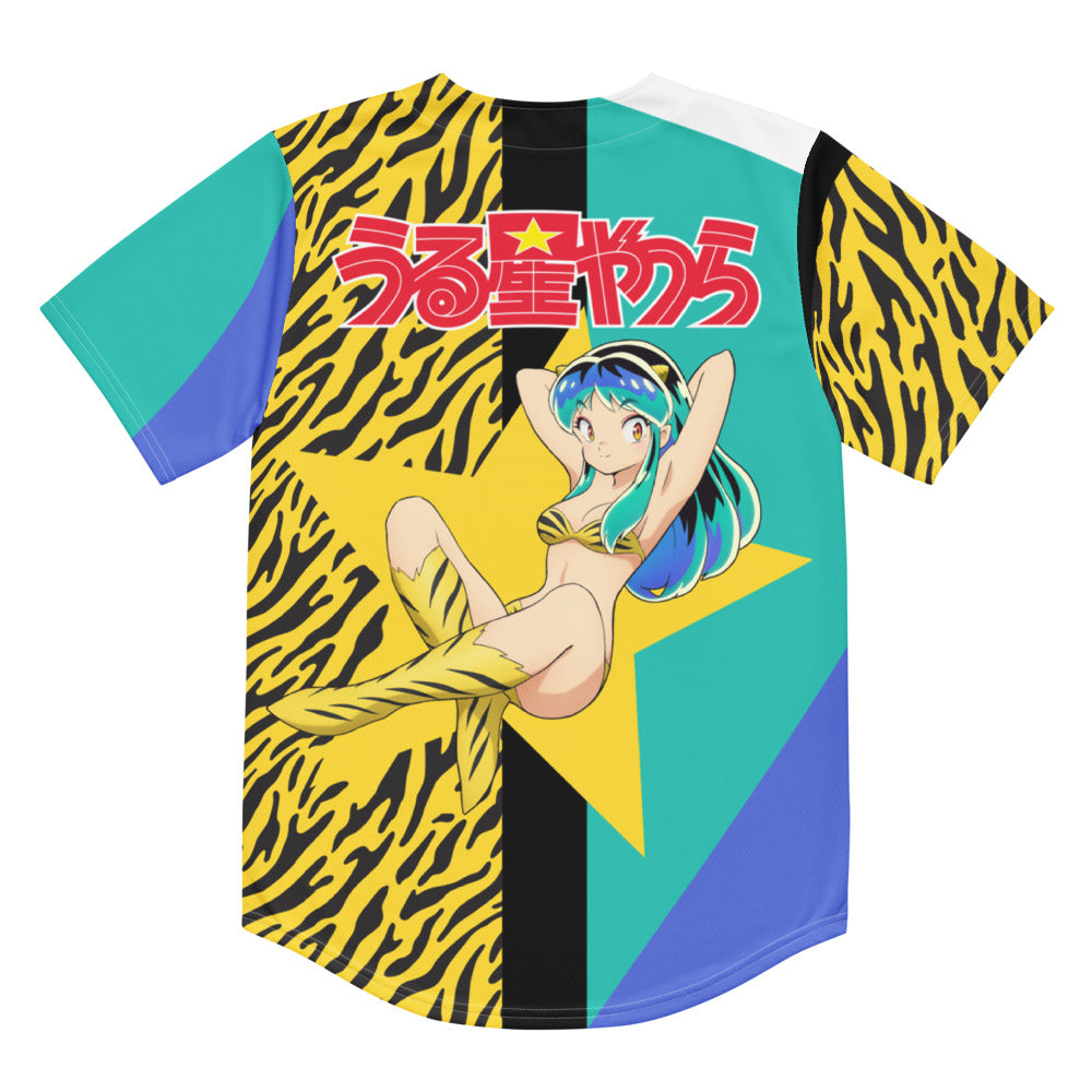 Electrify your look with the Urusei Yatsura Lum baseball jersey, featuring her signature yellow-and-black tiger print and vibrant detailing. Perfect for fans of the iconic alien heroine, this sporty design brings Lum's bold style and playful energy to your wardrobe.